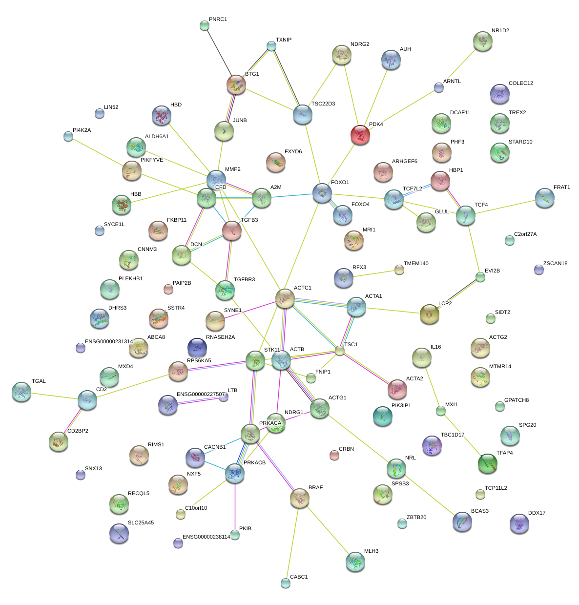 Network of associatons between targets according to the STRING database.