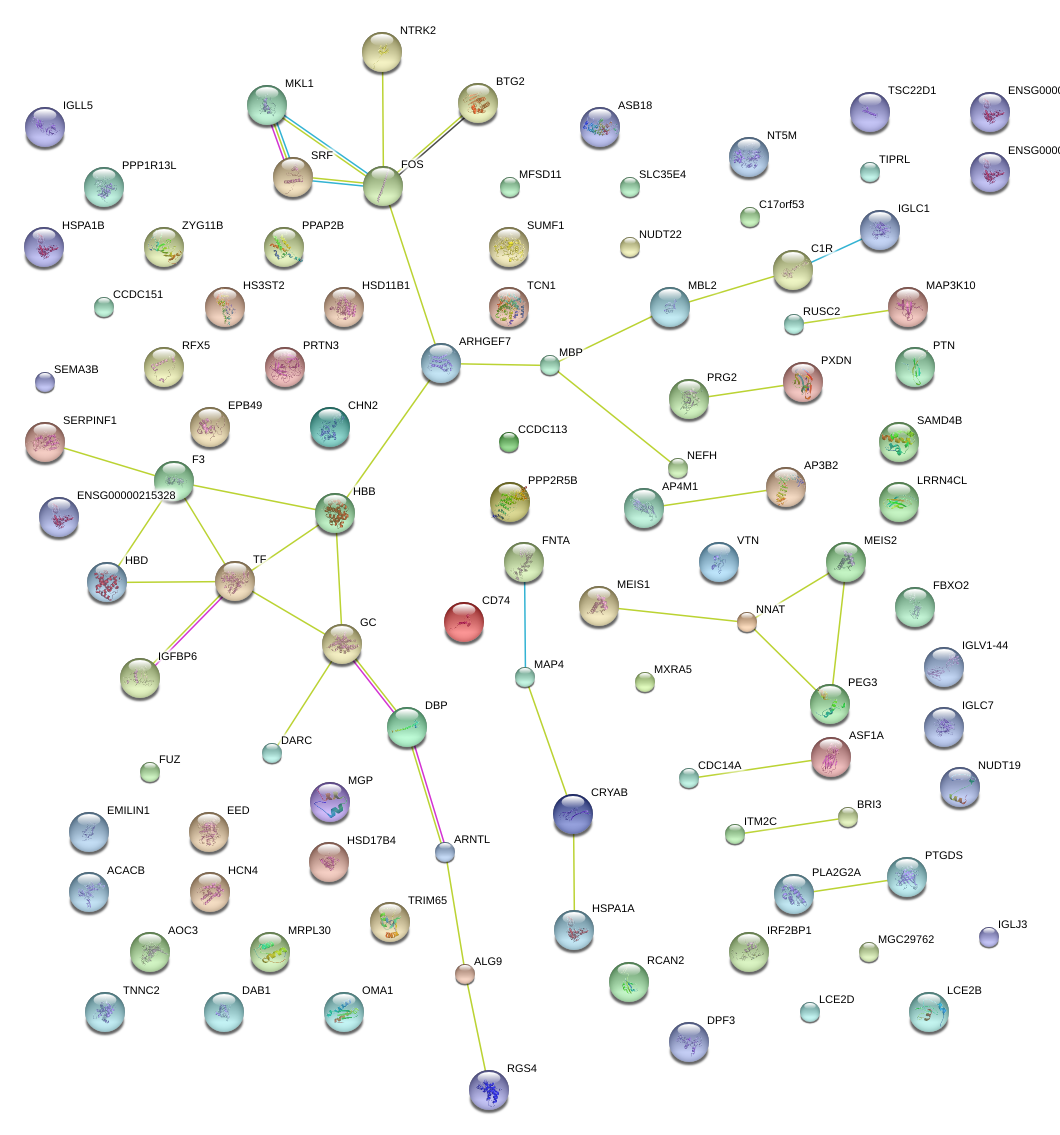 Network of associatons between targets according to the STRING database.