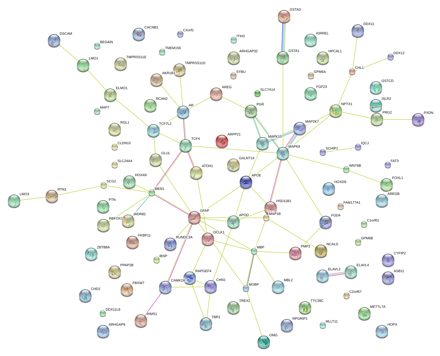 Network of associatons between targets according to the STRING database.