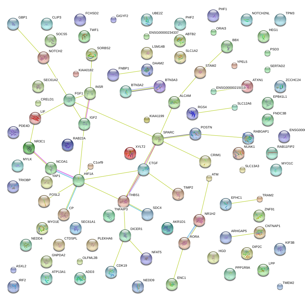 Network of associatons between targets according to the STRING database.