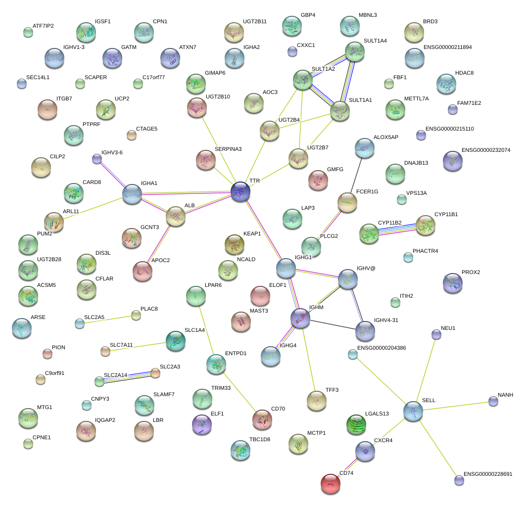 Network of associatons between targets according to the STRING database.