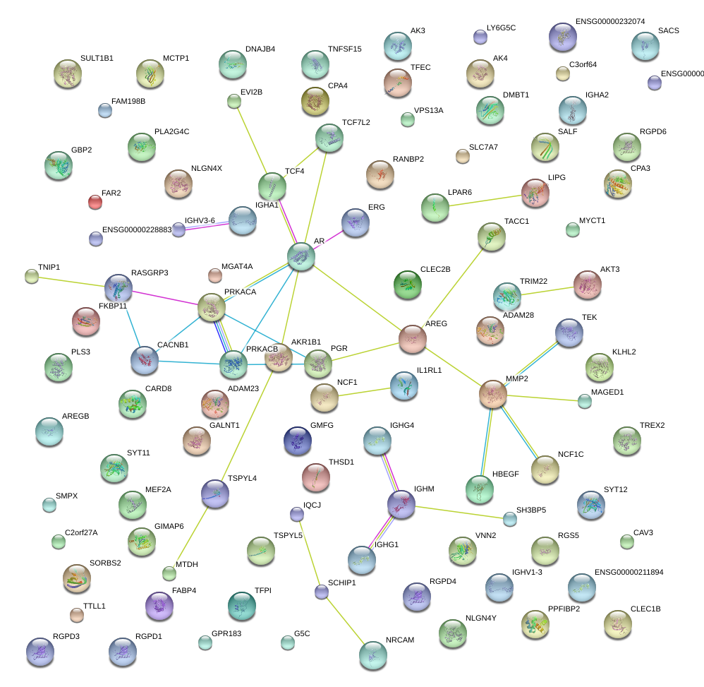 Network of associatons between targets according to the STRING database.