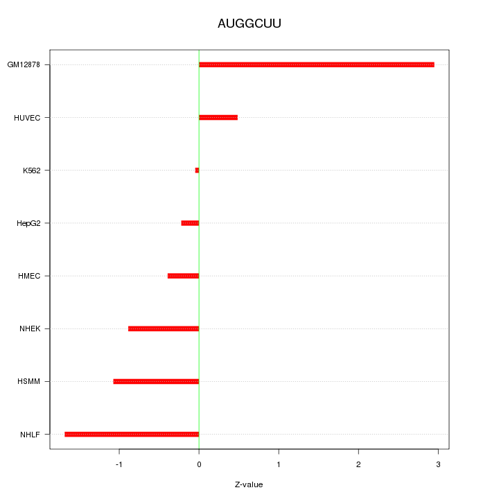 Sorted Z-values for motif AUGGCUU