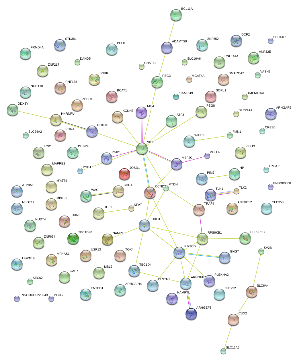 Network of associatons between targets according to the STRING database.