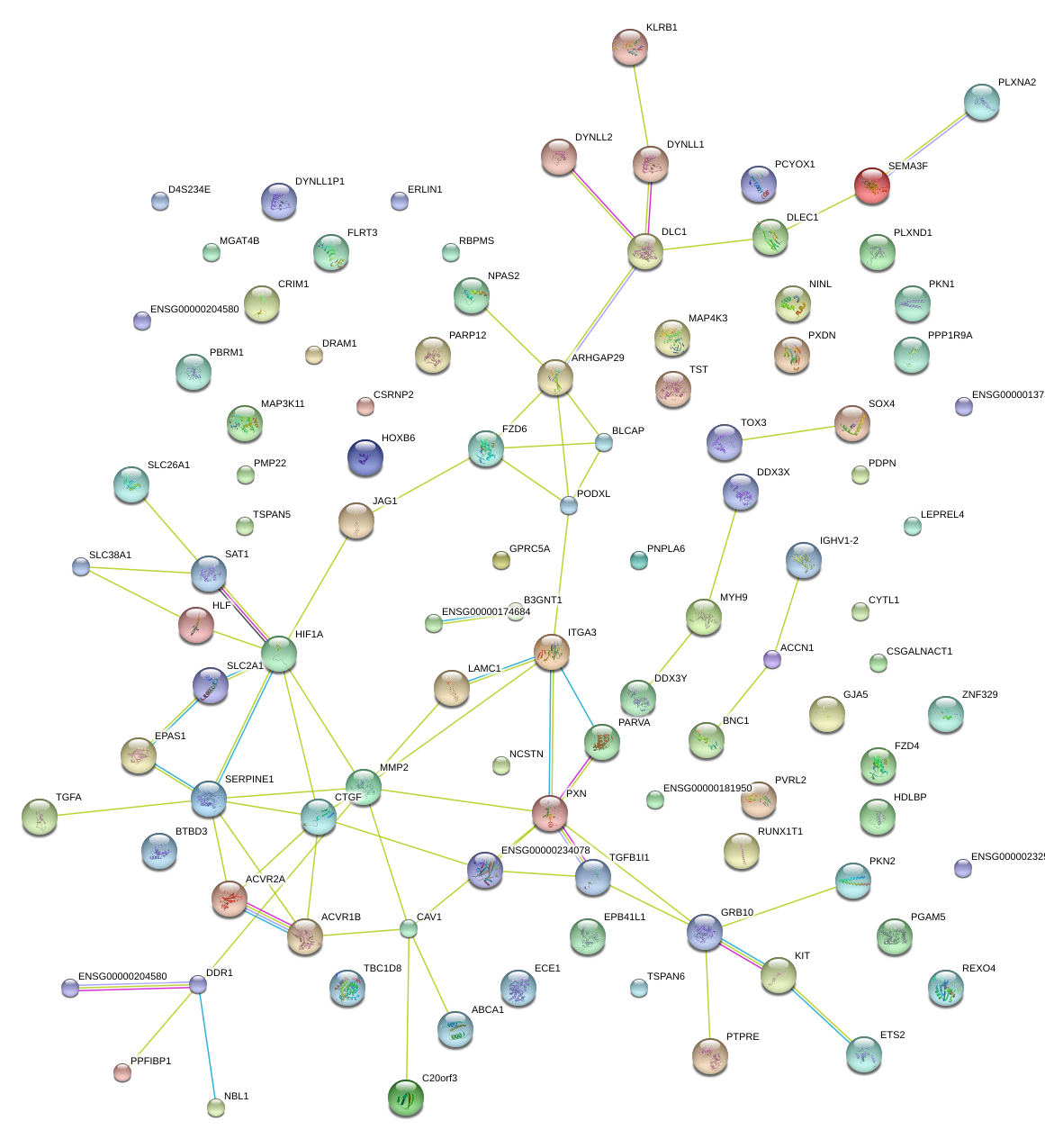 Network of associatons between targets according to the STRING database.