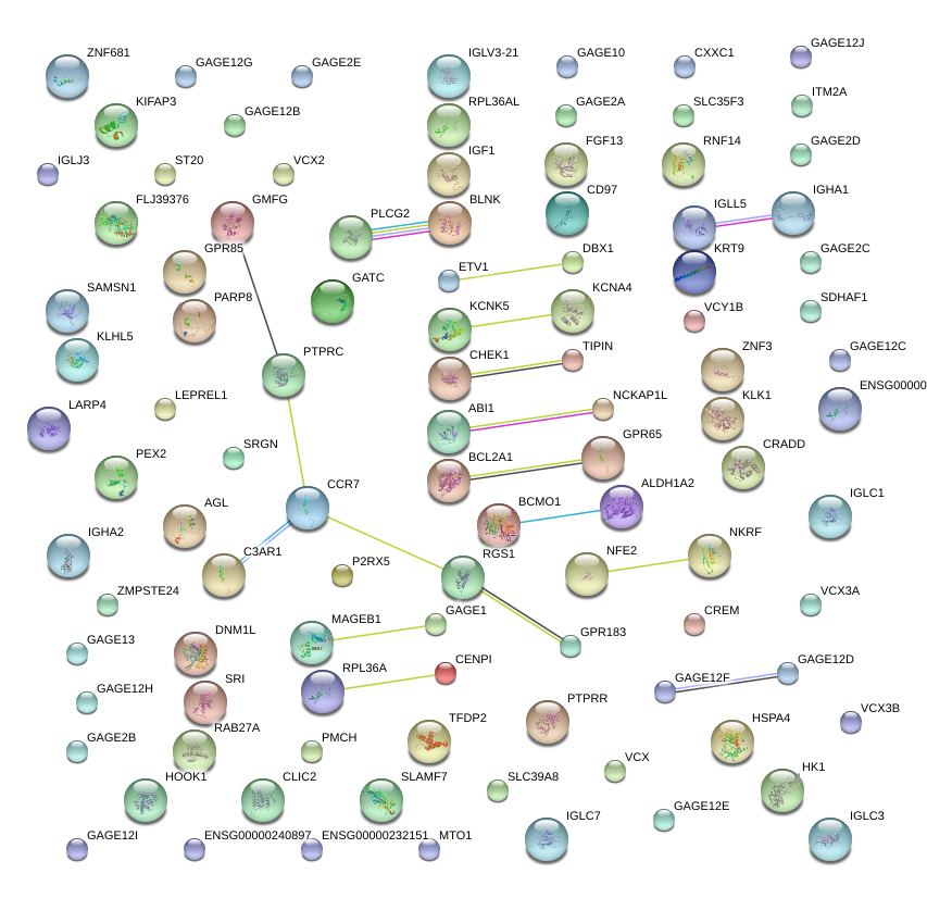 Network of associatons between targets according to the STRING database.