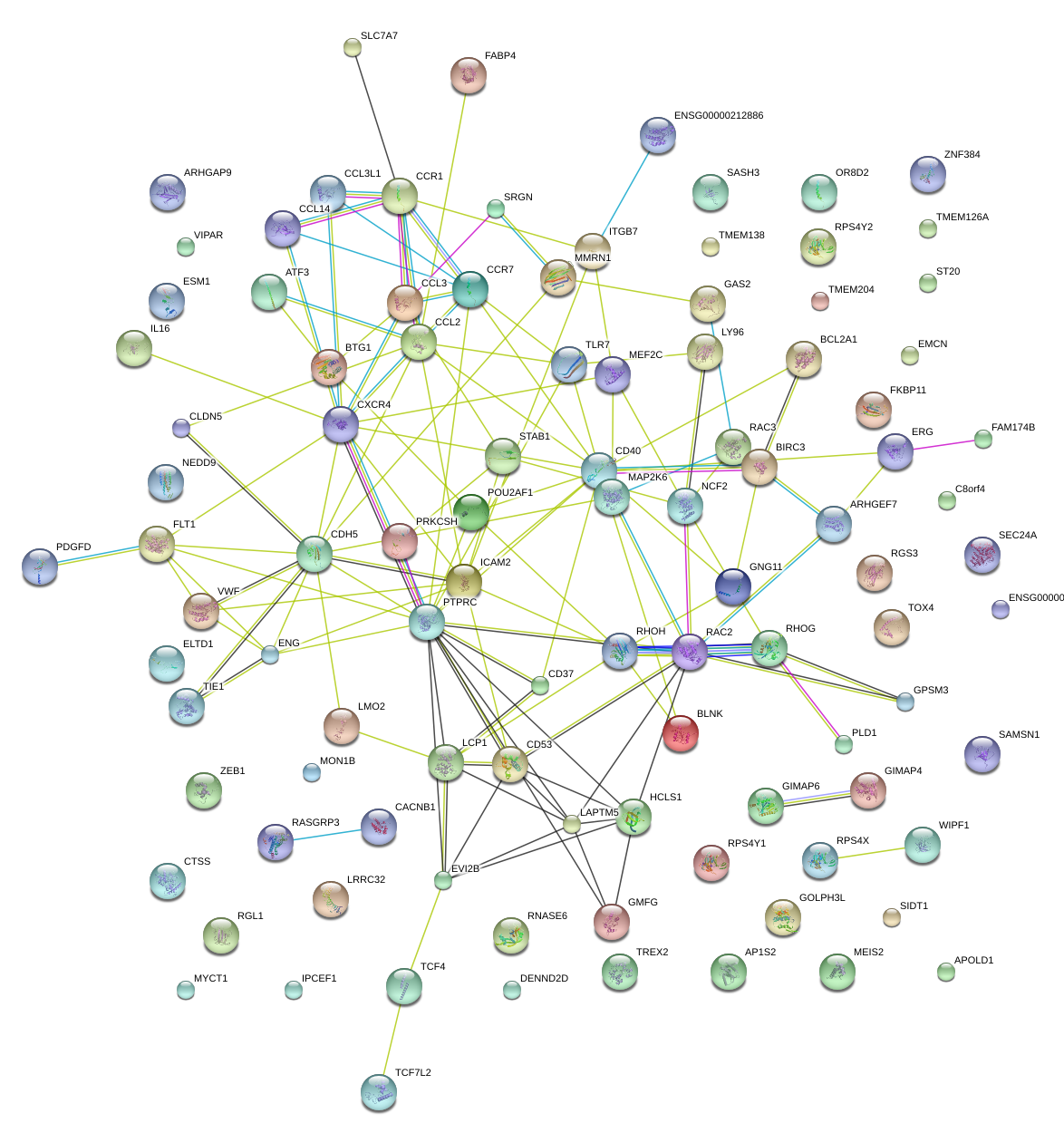 Network of associatons between targets according to the STRING database.