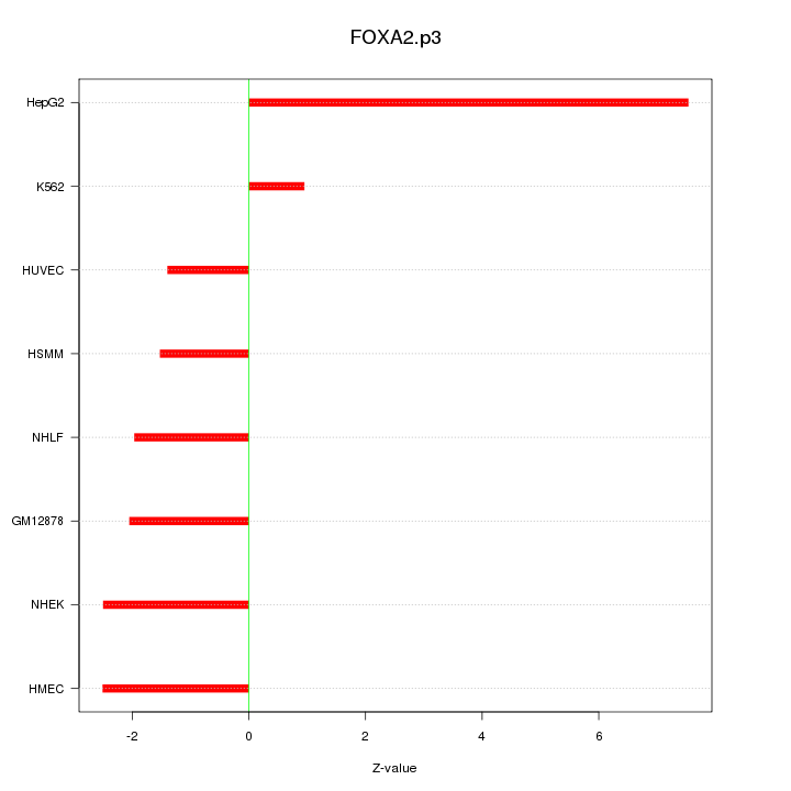 Sorted Z-values for motif FOXA2.p3