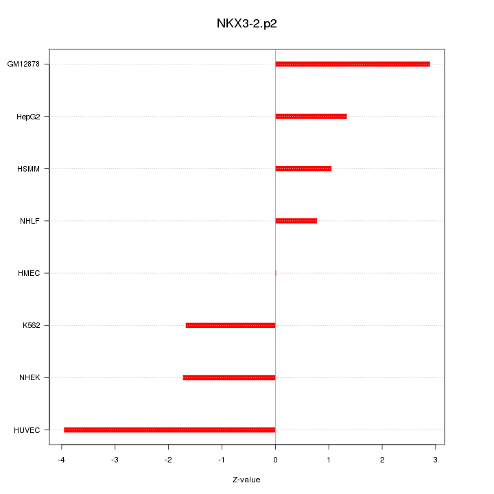 Sorted Z-values for motif NKX3-2.p2