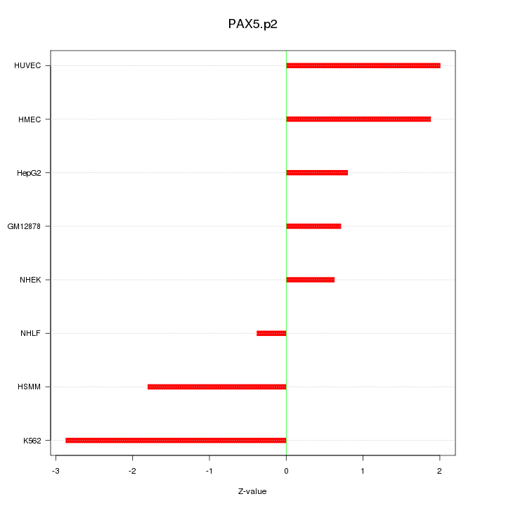 Sorted Z-values for motif PAX5.p2