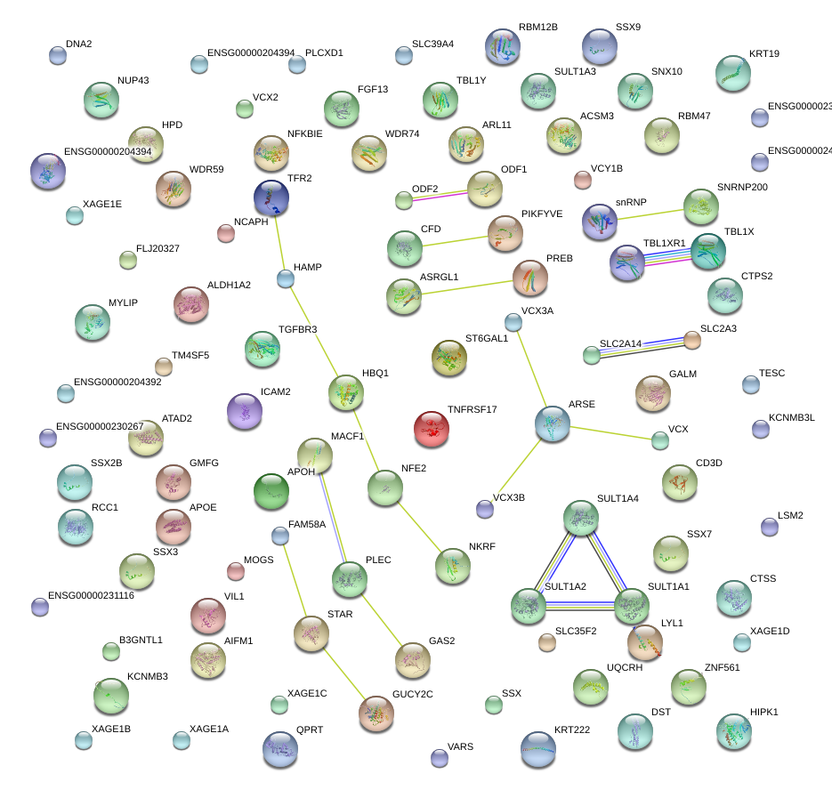 Network of associatons between targets according to the STRING database.