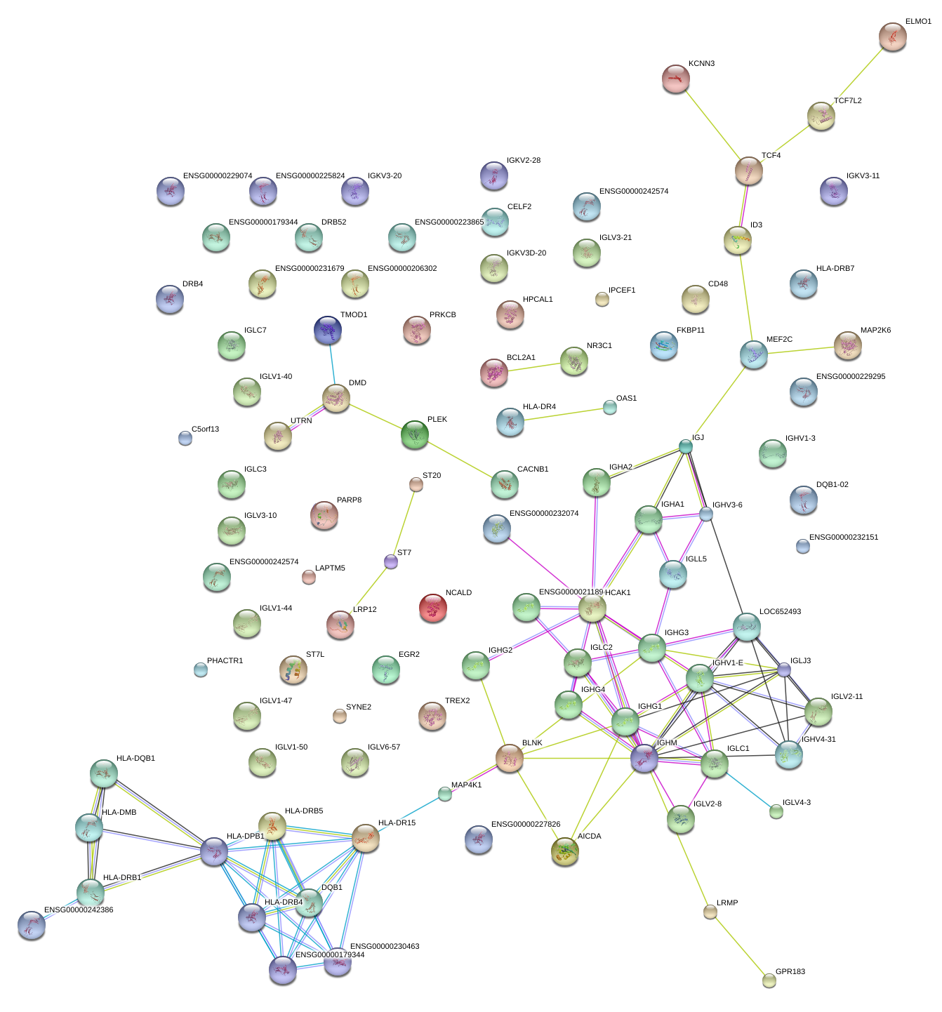 Network of associatons between targets according to the STRING database.