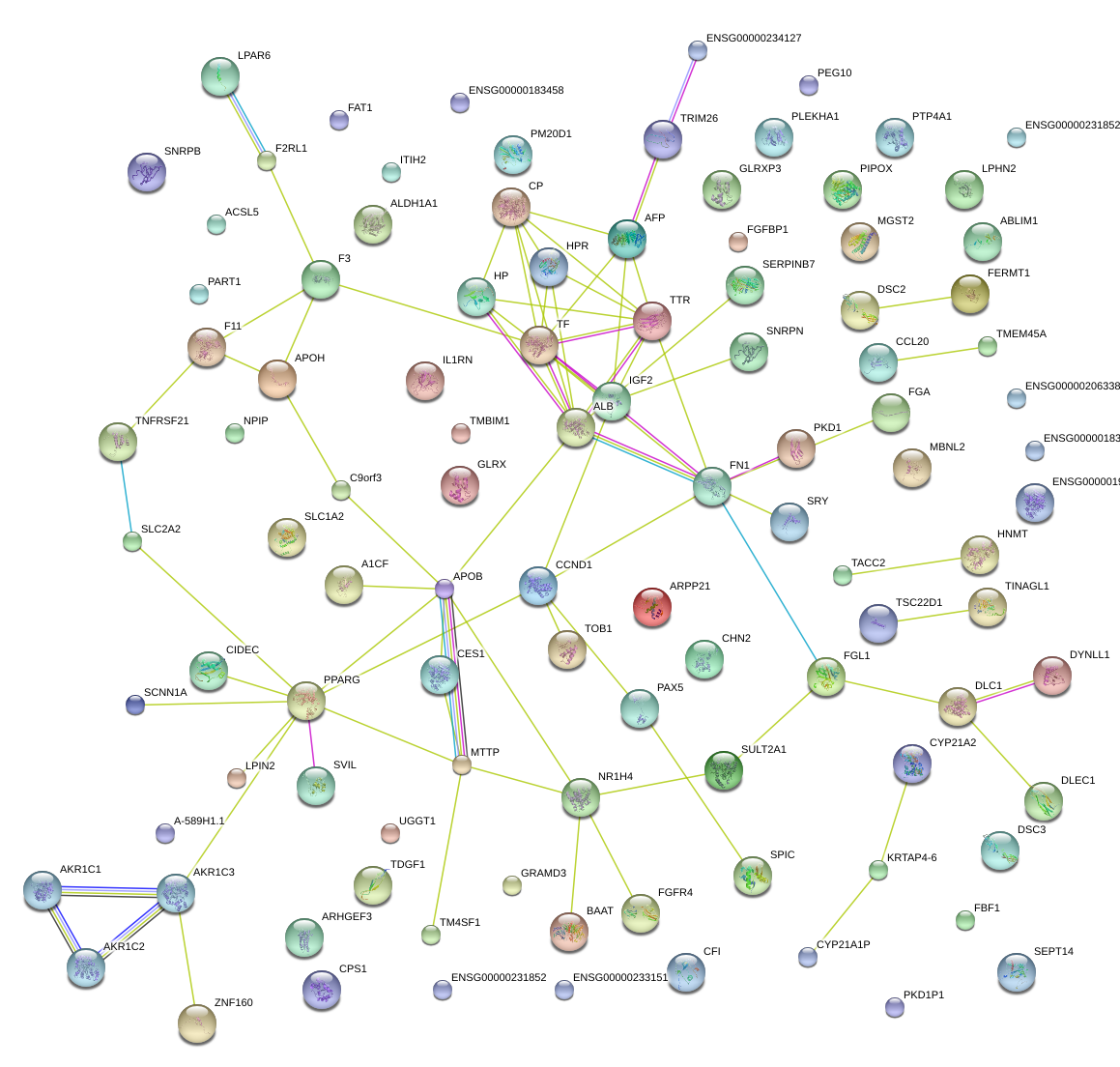 Network of associatons between targets according to the STRING database.