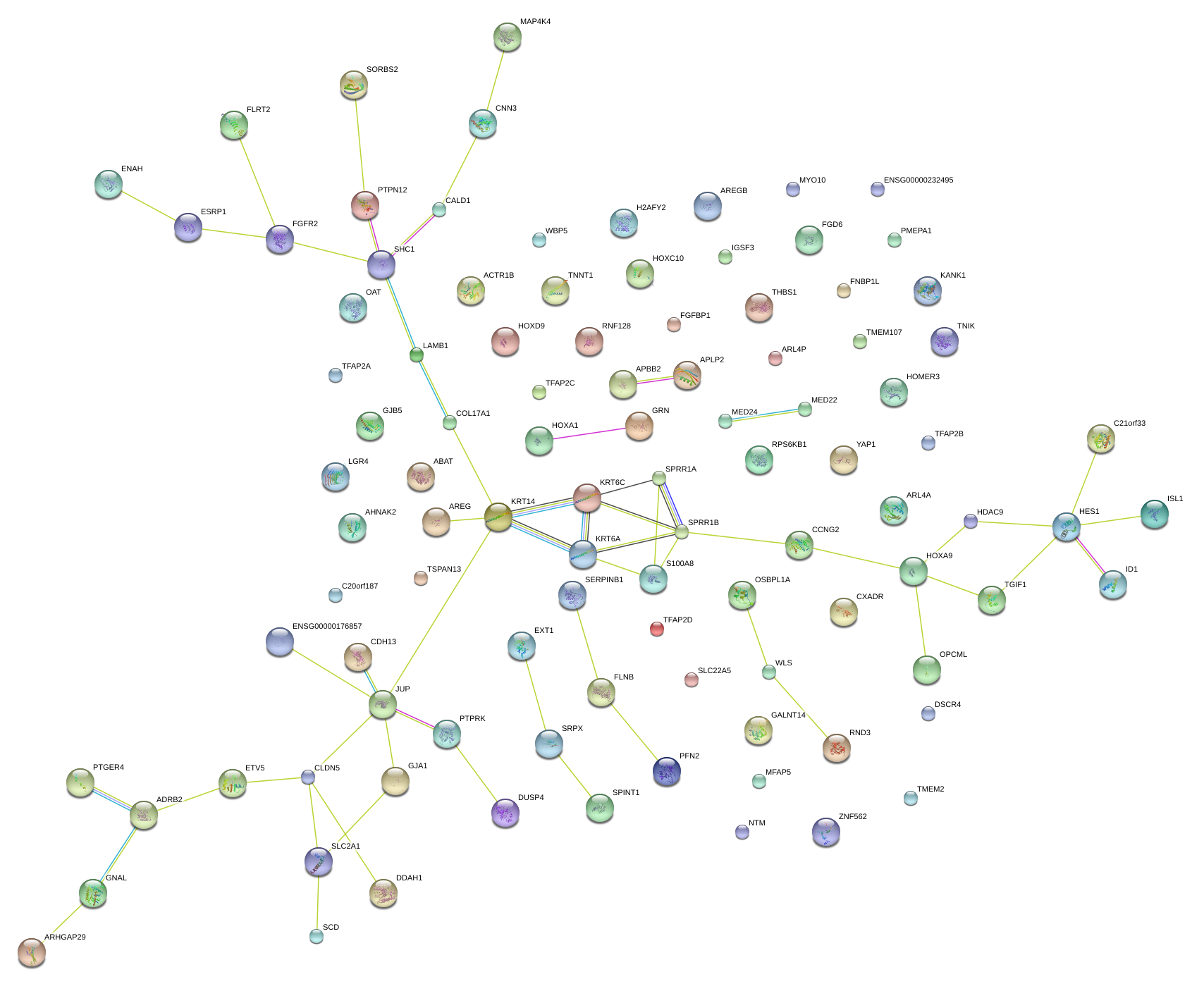 Network of associatons between targets according to the STRING database.