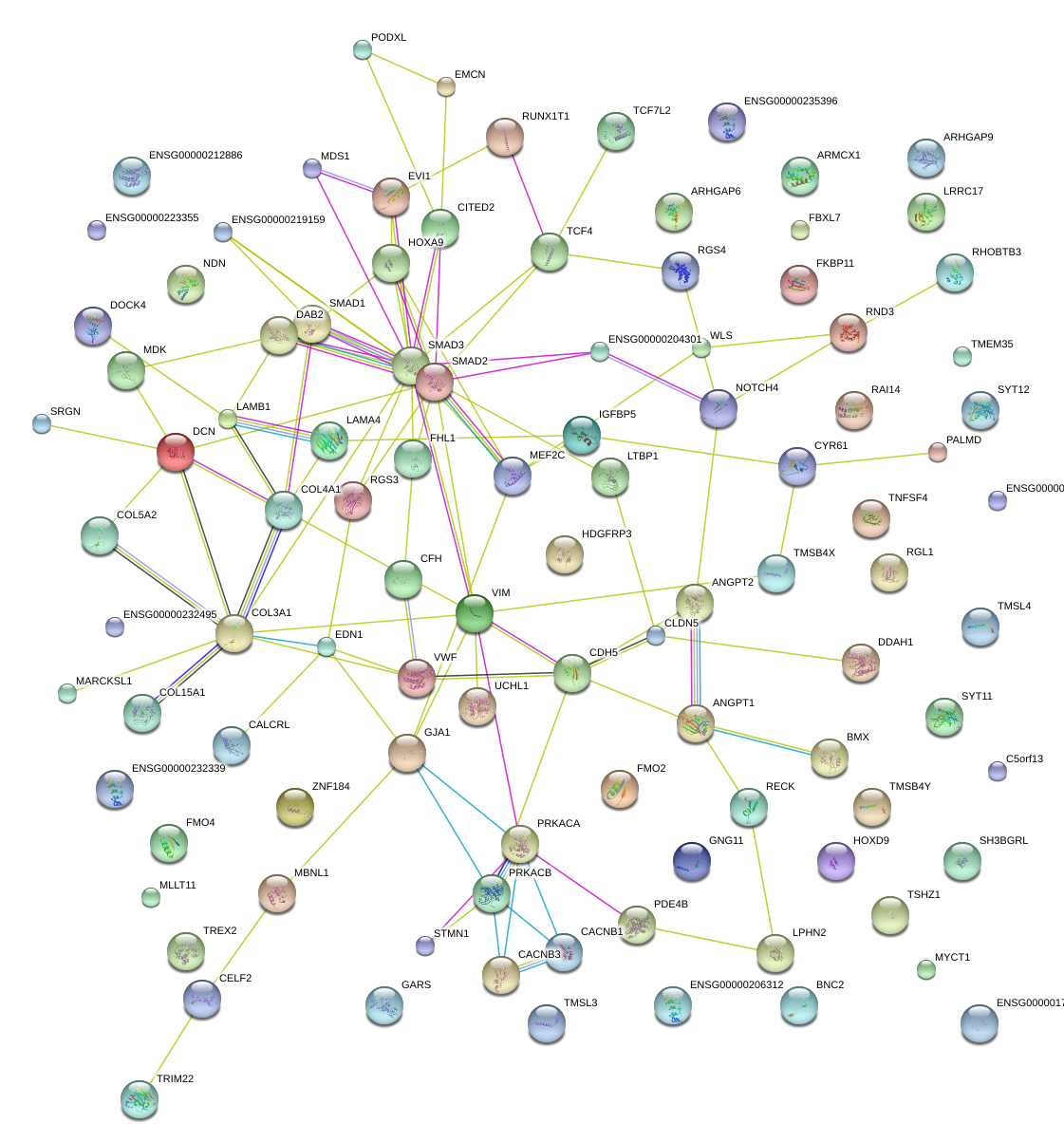 Network of associatons between targets according to the STRING database.