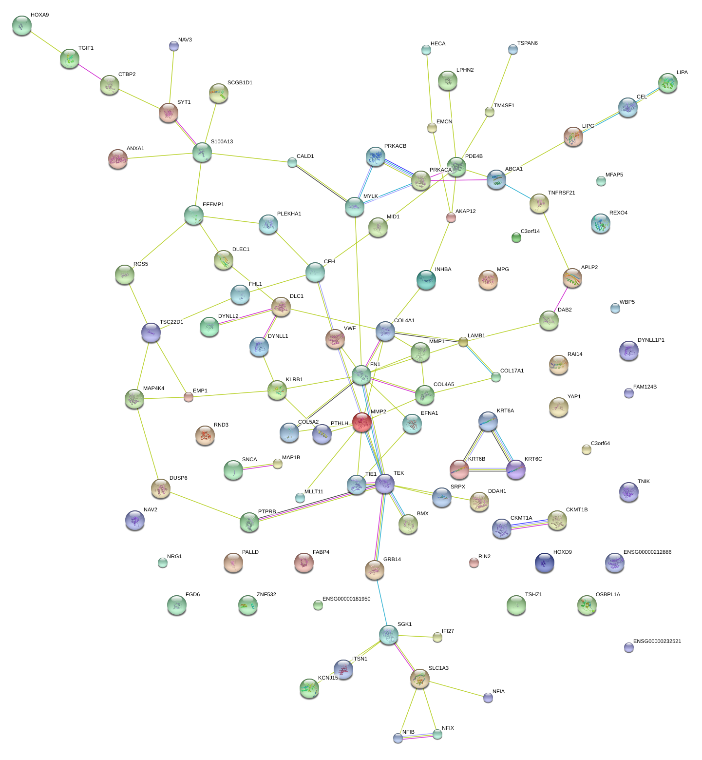 Network of associatons between targets according to the STRING database.