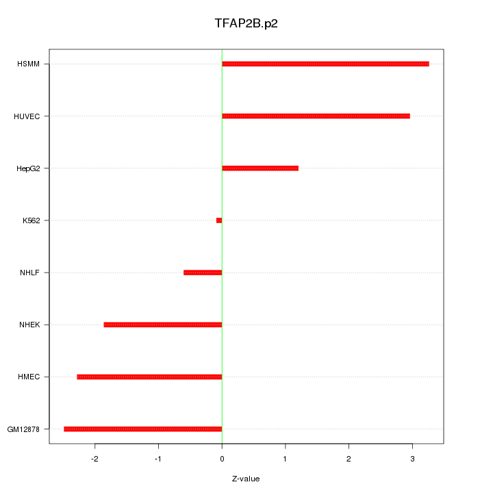 Sorted Z-values for motif TFAP2B.p2