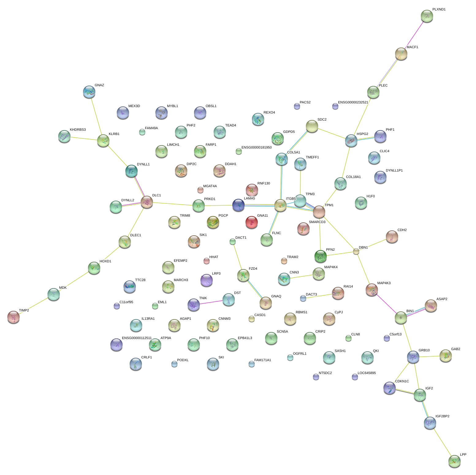 Network of associatons between targets according to the STRING database.