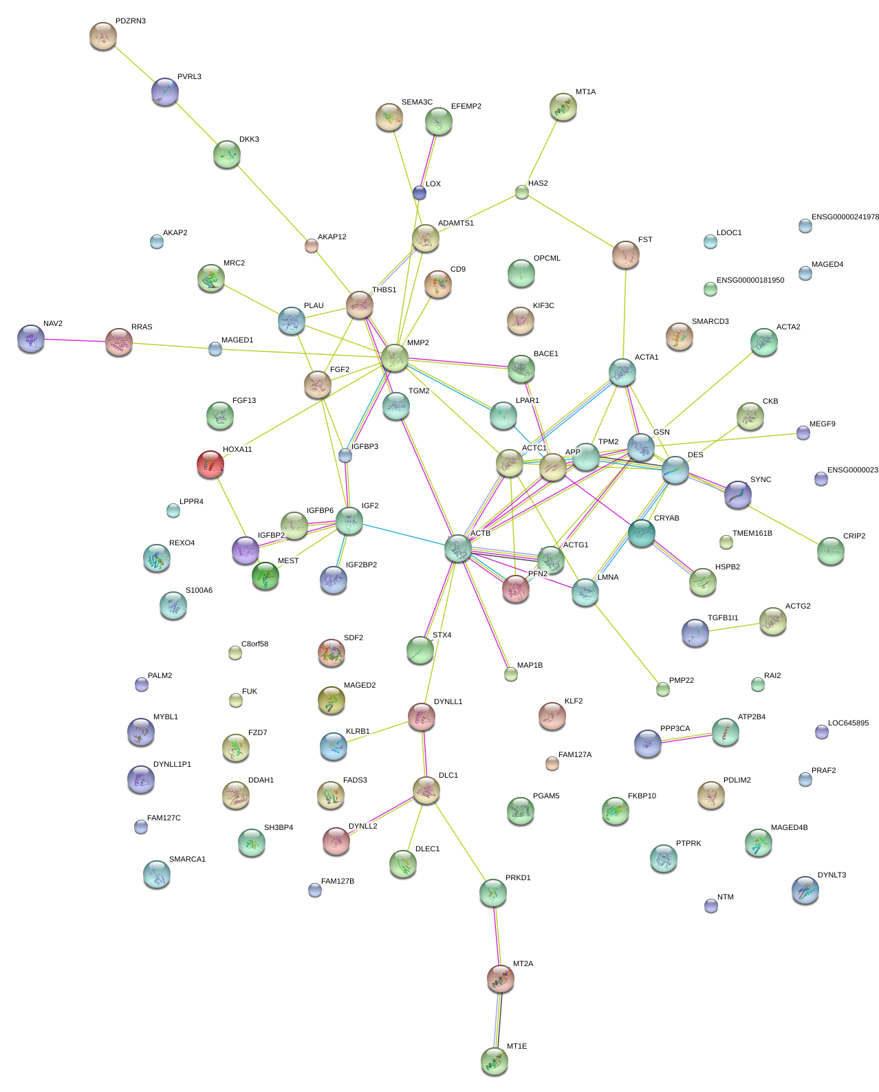 Network of associatons between targets according to the STRING database.
