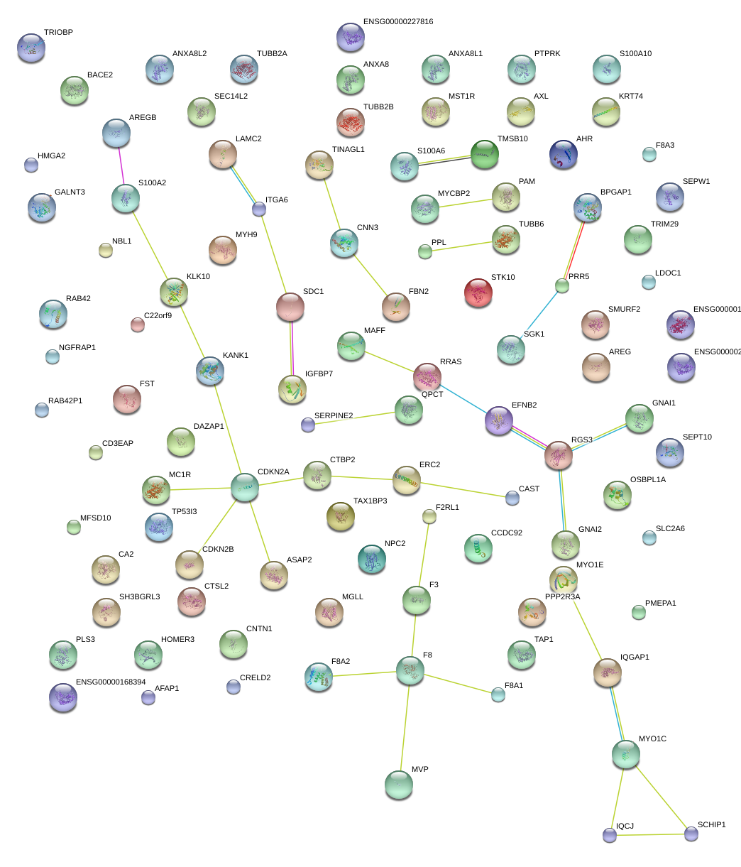 Network of associatons between targets according to the STRING database.