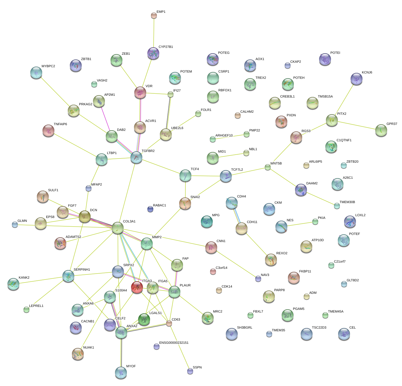 Network of associatons between targets according to the STRING database.